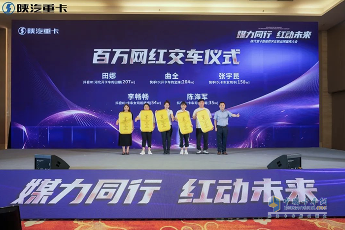 現(xiàn)場,還為五位購車網(wǎng)紅交付了象征財富的金鑰匙。他們不僅是陜汽忠實的用戶朋友,更是陜汽的品牌“代言人”。