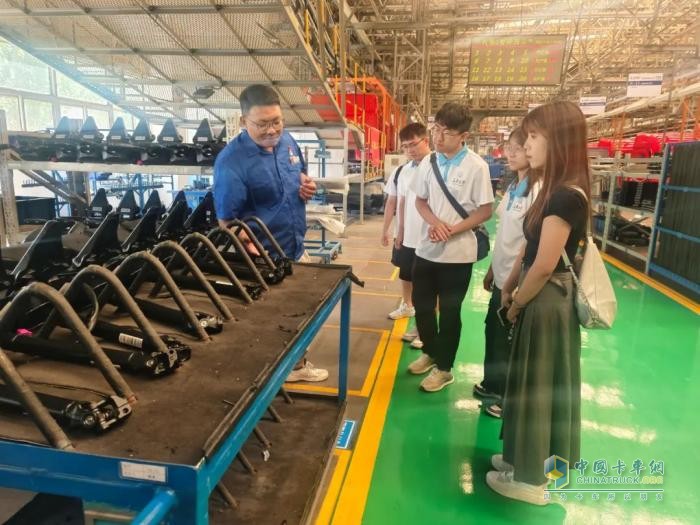 長安大學(xué)一行與總裝公司團(tuán)總支、駕駛室制造公司團(tuán)支部書記共同參觀了生產(chǎn)一線,工藝室的優(yōu)秀青年代表進(jìn)行了講解。