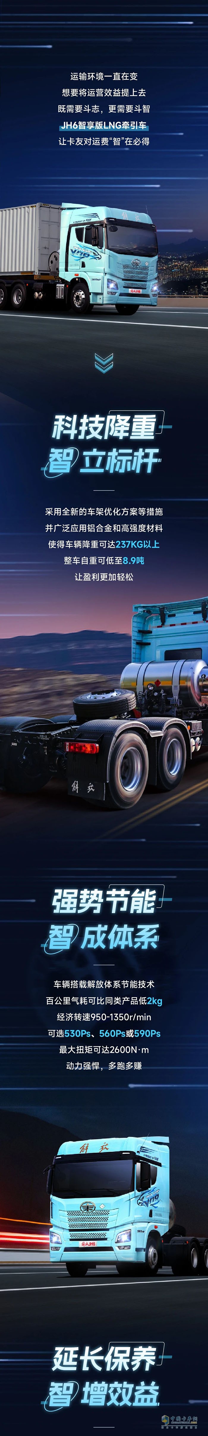 解放JH6智享版LNG牽引車,讓卡友“智”信掙錢!