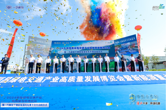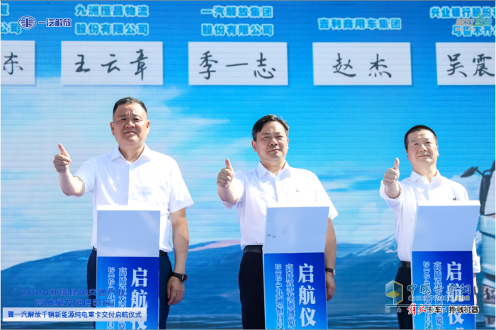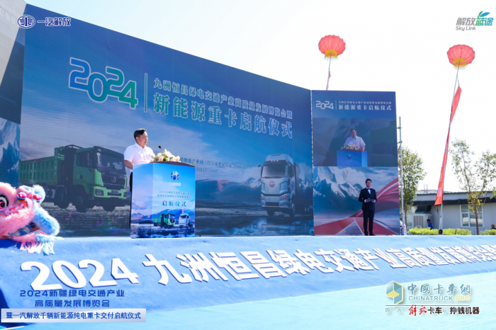 2024新疆綠電交通產(chǎn)業(yè)高質(zhì)量發(fā)展博覽會暨一汽解放千輛新能源純電車輛啟航儀式于7月27-28日在新疆昌吉市九州恒昌物流集團園區(qū)舉行。作為中國商用車行業(yè)的領(lǐng)軍企業(yè),一汽解放新能源事業(yè)部攜行業(yè)主要應(yīng)用場景產(chǎn)品亮相此次展會,向觀眾展示了一汽解放的最新成果和技術(shù)實力,再一次以高端、高效、節(jié)能的新突破為新疆當(dāng)?shù)匚锪鬟\輸高質(zhì)量發(fā)展注入新動能。一汽解放公司黨委委員、副總經(jīng)理季一志先生;自治區(qū)交通廳一級巡視員王永軒;自治區(qū)工商聯(lián)黨組成員、副主席斯日古楞;昌吉州人民政府副州長李丹;九洲恒昌股份有限公司董事長王云章先生等嘉賓出席了本次活動。![]()