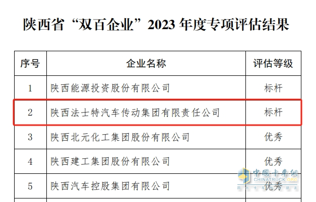 近日,國務(wù)院國資委公布地方“雙百企業(yè)”2023年度專項評估結(jié)果,法士特集團(tuán)再次獲評“雙百企業(yè)”標(biāo)桿企業(yè)。至此,法士特已連續(xù)兩年蟬聯(lián)國務(wù)院國資委“雙百企業(yè)”最高評級榮譽。