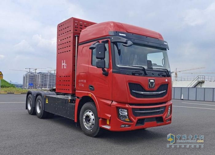 一款產(chǎn)品型號為ZZ4256Y424HZ1FCEV的汕德卡C9H燃料電池牽引車上榜(可選裝C7H駕駛室),整車采用重汽自研雙后軸四電機架構,配有寧德時代單體與總成,其PEMFC制造商則是華豐燃料電池有限公司。![]()