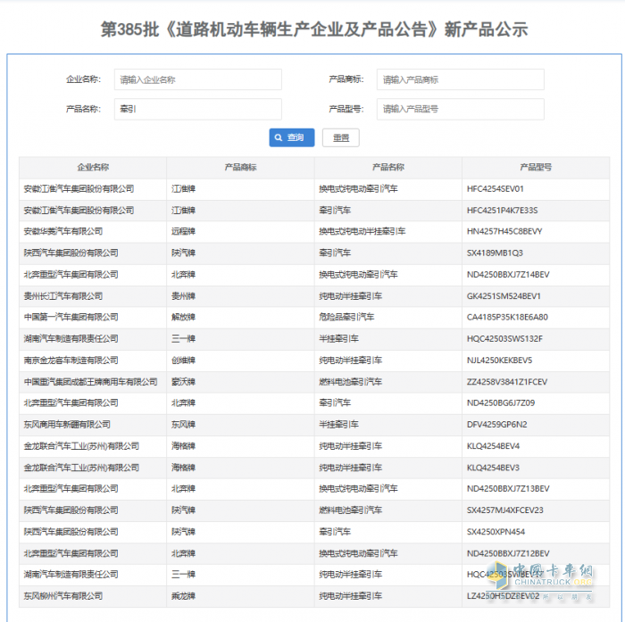 近日,工信部公示了第385批新車公告。中國卡車網(wǎng)通過盤點發(fā)現(xiàn),本期公告有42款牽引車新品上榜。