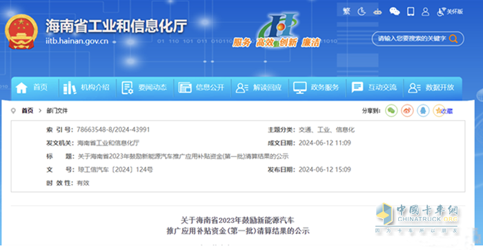近日,海南省工業(yè)和信息化廳發(fā)布關(guān)于海南省2023年鼓勵新能源汽車推廣應(yīng)用補(bǔ)貼資金(第一批)清算結(jié)果的公示。經(jīng)購車消費(fèi)者線上申報(bào)、線上線下審核、集中復(fù)核清算等流程,擬對第一批符合補(bǔ)貼條件的13881輛新能源汽車購車用戶(含個(gè)人用戶和單位用戶)發(fā)放補(bǔ)貼資金,共計(jì)人民幣3476.7萬元。其中,第一批撥付車輛(符合新能源載貨營運(yùn)汽車(含郵政快遞及城市物流配送車輛)運(yùn)營服務(wù)補(bǔ)貼要求車輛),補(bǔ)貼金額總計(jì)8780000元,補(bǔ)貼車輛788輛。