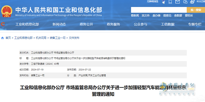 工業(yè)和信息化部辦公廳市場(chǎng)監(jiān)管總局辦公廳關(guān)于進(jìn)一步加強(qiáng)輕型汽車能源消耗量標(biāo)示管理的通知