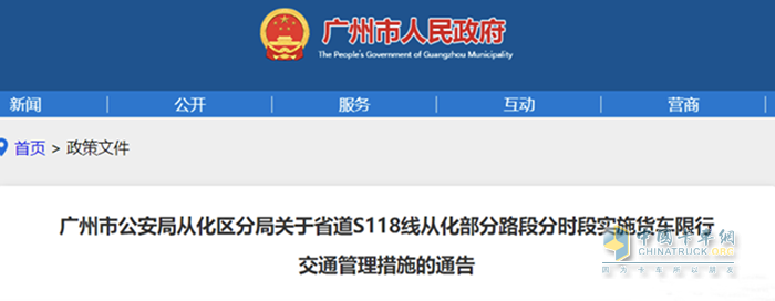 近日,廣州市公安局從化區(qū)分局發(fā)布《廣州市公安局從化區(qū)分局關(guān)于省道S118線從化部分路段分時(shí)段實(shí)施貨車限行交通管理措施的通告》。