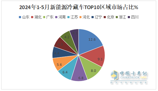 可見2024年1-5月新能源冷藏車區(qū)域流向很不均衡。