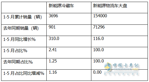 正是上述諸多利好因素的疊加作用,導(dǎo)致今年1-5月新能源冷藏車市場跑贏新能源物流車大盤。