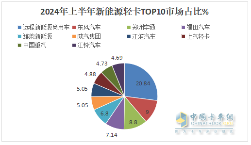 總體看,2024年上半年新能源輕卡競爭格局中,遠程強勢奪冠、東風(fēng)宇通爭奪第二,TOP10同比均大漲,江鈴領(lǐng)漲(2223%)。