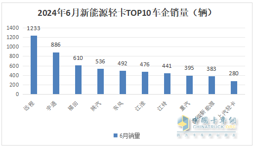 根據(jù)終端上牌數(shù)據(jù),2024年6月新能源輕卡TOP10銷量排行:
