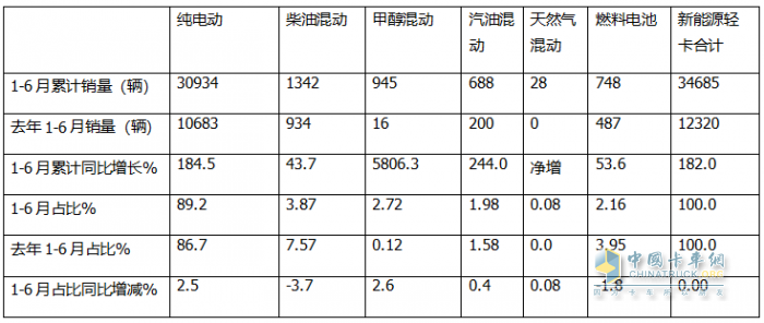 ---純電動累計銷售30394輛,累計同比增長184.5%,跑贏大盤;占據(jù)新能源輕卡市場89.2%的份額,居新能源輕卡絕對的主體地位,且占比同比增加2.5個百分點,說明今年1-6月純電動輕卡的主體地位同比有明顯增強的趨勢;