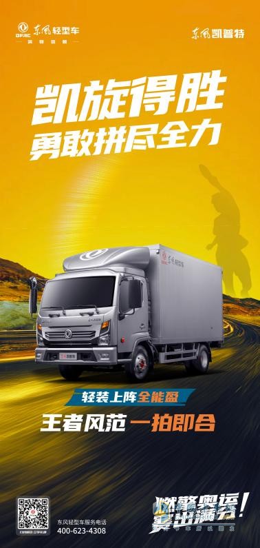 當數(shù)百奧運健兒在巴黎的賽場上,揮灑汗水揚我國威之時,同樣有一群人,與東風輕型車一起,披星戴月,翻山越海,不斷刷新著自己的里程記錄。以敢拼敢搏的精神,做自己生活中的冠軍。在不斷追求敢于超越的生活之路上,東風輕型車將與用戶們緊密連接,形成心的共鳴,攜手用戶努力為生活賽出滿分!