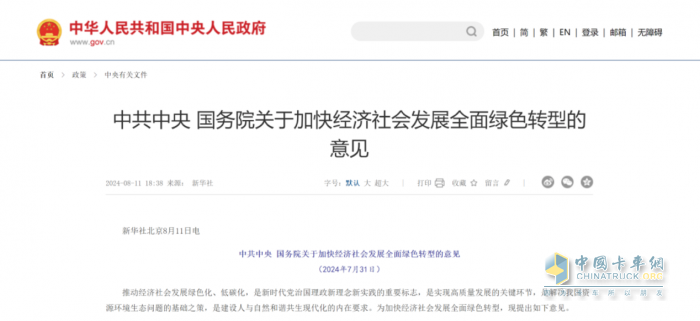2024年8月11日,《關(guān)于加快經(jīng)濟社會發(fā)展全面綠色轉(zhuǎn)型的意見》發(fā)布,這是中央層面首次對加快經(jīng)濟社會發(fā)展全面綠色轉(zhuǎn)型進行系統(tǒng)部署。