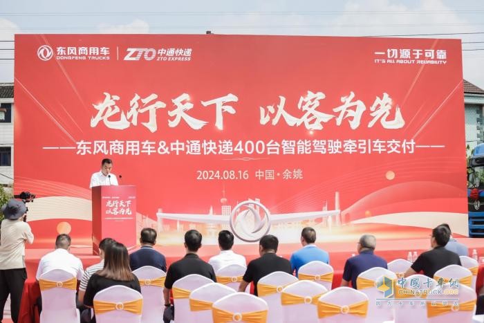 隨著智能駕駛技術(shù)的不斷提升和成熟,智能重卡被越來越多地應(yīng)用于公路干線物流等開放場景,成為推動(dòng)物流行業(yè)向智能化、綠色化、高效化轉(zhuǎn)型的關(guān)鍵力量。2024年8月16日,一場商用車行業(yè)與物流運(yùn)輸行業(yè)的強(qiáng)強(qiáng)合作受到廣泛關(guān)注,東風(fēng)商用車有限公司攜手中通快遞股份有限公司(下文簡稱中通快遞),在浙江余姚舉行盛大的智能重卡簽約交付活動(dòng)——400臺(tái)東風(fēng)天龍旗艦KX智能重卡正式交付,就此拉開二者智慧物流合作藍(lán)圖,中通快遞寧波區(qū)域總經(jīng)理戚華君、中通快遞浙北區(qū)域運(yùn)營總監(jiān)張強(qiáng),東風(fēng)商用車營銷公司副總經(jīng)理薛林藝、東風(fēng)商用車研發(fā)中心智能車總師涂祎麟,嬴徹科技銷售高級(jí)總監(jiān)周傳波,東風(fēng)康明斯東風(fēng)集團(tuán)市場銷售總監(jiān)張俊等領(lǐng)導(dǎo)出席活動(dòng)并見證。![]()