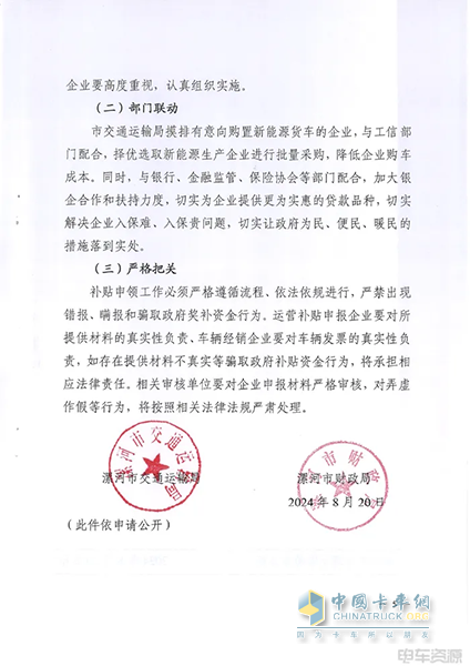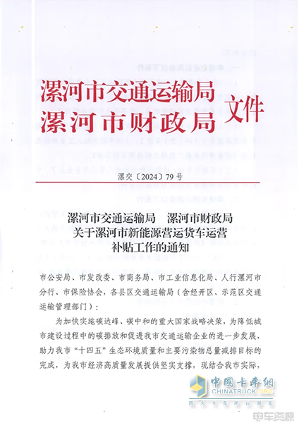 2024年8月20日,為加快實(shí)施碳達(dá)峰、碳中和的重大國家戰(zhàn)略決策,降低城市建設(shè)過程中的碳排放和促進(jìn)漯河市交通運(yùn)輸企業(yè)的進(jìn)一步發(fā)展,漯河市交通運(yùn)輸局結(jié)合漯河市實(shí)際出臺了新能源營運(yùn)貨車運(yùn)營補(bǔ)貼政策,助力“十四五”生態(tài)環(huán)境質(zhì)量和主要污染物總量減排目標(biāo)的完成。