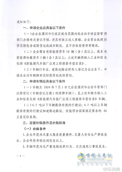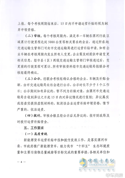 對達(dá)到補(bǔ)貼條件的新能源貨車(以綠牌為準(zhǔn)),在漯河行政區(qū)域范圍內(nèi)年行駛里程達(dá)到5000公里的給予5000元的運(yùn)營補(bǔ)貼,行駛里程在達(dá)到5000公里的基礎(chǔ)上每增加1000公里,補(bǔ)貼增加1000元,累計(jì)補(bǔ)貼最高不超過15000元。
