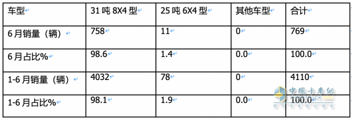 ---徐工汽車累計銷售1194輛,同比增長54.66%,跑輸大盤,市場占比29.05%,奪冠;