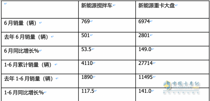 可見,不管是今年6月還是1-6月,新能源攪拌車均跑輸能源重卡大盤。