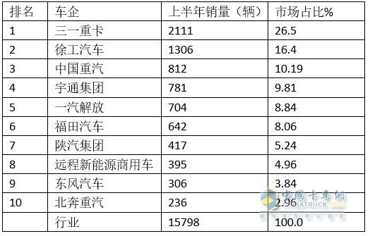 ----中國重汽累計銷售812輛,居第三,累計占比10.19%;