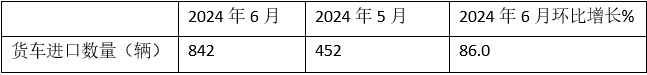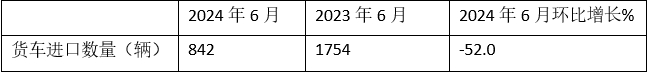 截圖1,2024年6月及1-6月我國貨車進(jìn)口數(shù)量及同比(數(shù)據(jù)來源;中國汽車流通協(xié)會(huì))