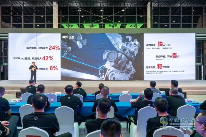 其中,車輛搭載的玉柴K08大排量發(fā)動機(jī),8L的排量較同級產(chǎn)品大24%;且350馬力輕松實(shí)現(xiàn)1450牛·米超大扭矩,較同級產(chǎn)品高42%。最高檔60km/h加速至80km/h車速,高速超車比產(chǎn)品快7.08s,動力強(qiáng)勁輕松實(shí)現(xiàn)起步快、超車快、爬坡快。整車搭載的采埃孚9AMT匹配新一代高性能微處理器,換擋更快更順滑,且采用超速擋設(shè)計,最高擋速比0.75,始終做到快人一步,實(shí)現(xiàn)千公里時間縮短2小時。