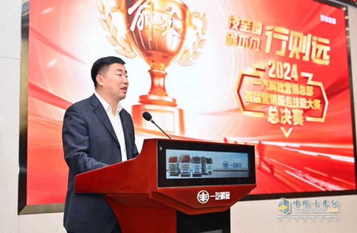 一汽解放營銷總部黨委書記、總經(jīng)理紀(jì)勝師在講話中強(qiáng)調(diào)了開展此次大賽的重要意義,并對參賽選手提出三點要求,要保持“以比促學(xué),以學(xué)促練”的學(xué)習(xí)精神;要全情參與,持續(xù)強(qiáng)化業(yè)務(wù)技能,不斷提高客戶開發(fā)與維護(hù)成效;要發(fā)揮好示范帶動作用,發(fā)揮好營銷服務(wù)渠道合力,為達(dá)成全年目標(biāo)貢獻(xiàn)營銷力量。