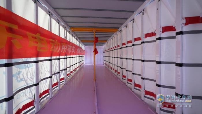 而面對目前運(yùn)輸企業(yè)所追求的高時效,這款產(chǎn)品也更具優(yōu)勢。相比傳統(tǒng)的廂式掛車或者翼展掛車,開樂電動側(cè)簾廂式掛車兩側(cè)簾布可以通過遙控方式,同時向前、向后打開,也可以一起向中間聚集,還可以向左右任意位置移動,簾布打開之后兩側(cè)沒有立柱,裝卸貨不受限制,完全打開的狀態(tài)就是一個移動的大平臺,側(cè)簾的開和關(guān)都能在20秒之內(nèi)完成,卸貨15分鐘之內(nèi)輕松搞定,更加高效。