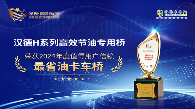 漢德H系列高效節(jié)油專用橋榮獲“2024年度值得用戶信賴最省油卡車橋”獎項