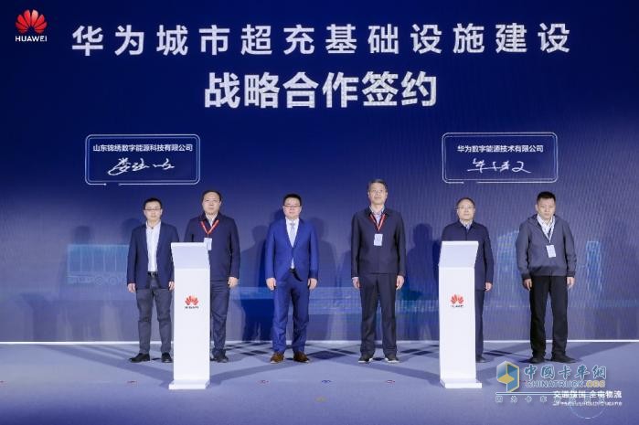 發(fā)布會(huì)現(xiàn)場(chǎng)簽約華為物流超充基礎(chǔ)設(shè)施建設(shè)、華為山東物流大數(shù)據(jù)應(yīng)用中心建設(shè)、華為城市超充基礎(chǔ)設(shè)施建設(shè)等多項(xiàng)戰(zhàn)略合作。本次活動(dòng)邀請(qǐng)行業(yè)專(zhuān)家及企業(yè)伙伴廣泛參與,共同探討推進(jìn)物流電動(dòng)化、數(shù)字化、降本增效、綠電交通的新思路、新技術(shù)、新措施。通過(guò)優(yōu)化線(xiàn)路規(guī)劃布局、提升運(yùn)輸承載效率、加大清潔能源占比等有效手段,推動(dòng)新能源商用車(chē)等優(yōu)勢(shì)產(chǎn)業(yè)集群促進(jìn)高質(zhì)量充電基礎(chǔ)設(shè)施網(wǎng)絡(luò)協(xié)同升級(jí),讓交通運(yùn)輸領(lǐng)域能源轉(zhuǎn)型支撐減碳成效向好達(dá)成。