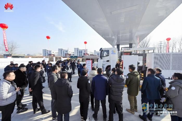 此次大會(huì)期間,眾多嘉賓及參會(huì)的合作伙伴現(xiàn)場(chǎng)參觀了位于臨沂的“國(guó)家綜合貨運(yùn)樞紐補(bǔ)鏈強(qiáng)鏈?zhǔn)痉俄?xiàng)目—南外環(huán)站”,實(shí)地考察體驗(yàn)了華為超充在物流場(chǎng)景為新能源重卡快速補(bǔ)能的優(yōu)質(zhì)案例。