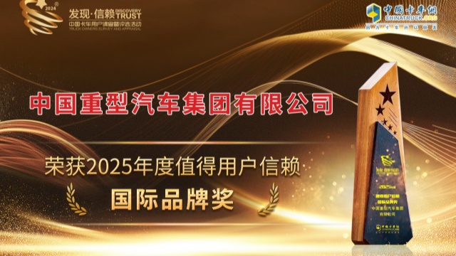 中國(guó)重型汽車集團(tuán)有限公司榮獲2025年度值得用戶信賴國(guó)際品牌獎(jiǎng)