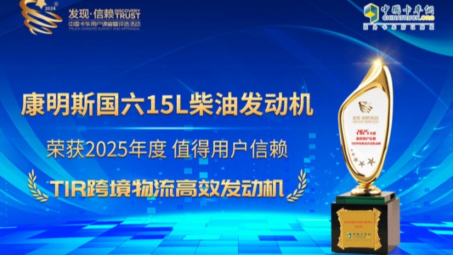 康明斯國(guó)六15L柴油發(fā)動(dòng)機(jī)榮獲“2025年度值得用戶信賴 TIR跨境物流高效發(fā)動(dòng)機(jī)”獎(jiǎng)