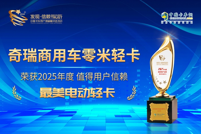 奇瑞商用車零米輕卡榮獲“2025年度值得用戶信賴 最美電動輕卡“獎。