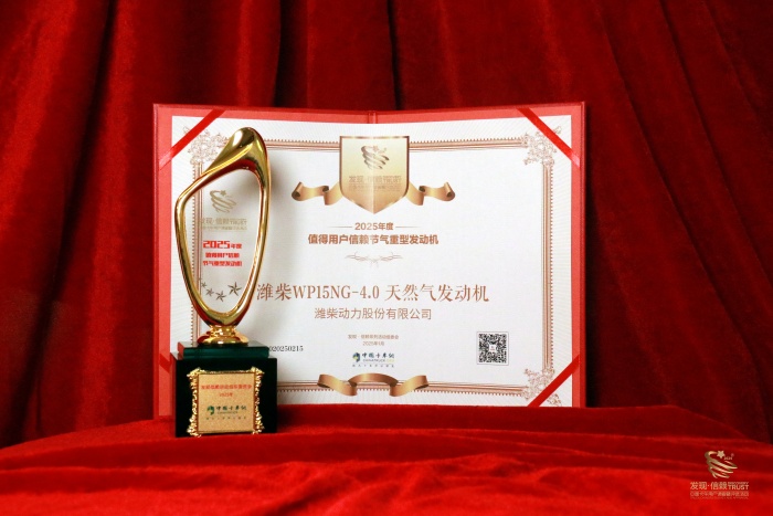 濰柴動力榮獲“2025年度值得用戶信賴 節(jié)氣重型發(fā)動機“獎。