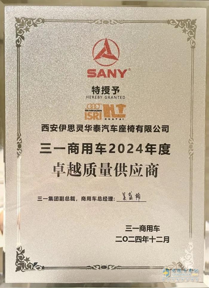 伊思靈華泰對品質(zhì)的追求也得到了眾多合作伙伴的充分認可, 2024年底-2025年初各商用車品牌合作伙伴大會中,伊思靈華泰陸續(xù)獲得了一汽解放“質(zhì)量優(yōu)勝獎”,三一商用車“卓越質(zhì)量供應商”獎,三一重起“最佳質(zhì)量”獎,遠程新能源商用車“科技遠程”獎。