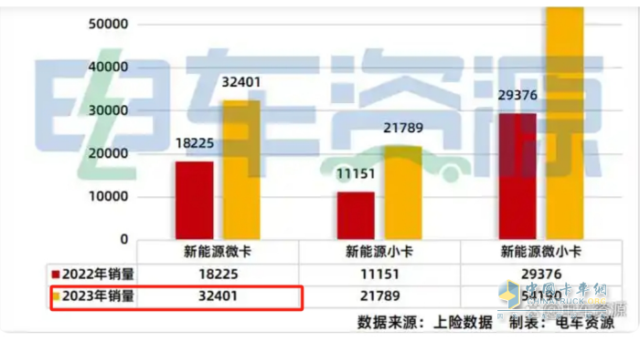 截圖1,2023年新能源微卡銷量(數(shù)據(jù)來源:電車資源提供的上牌信息)