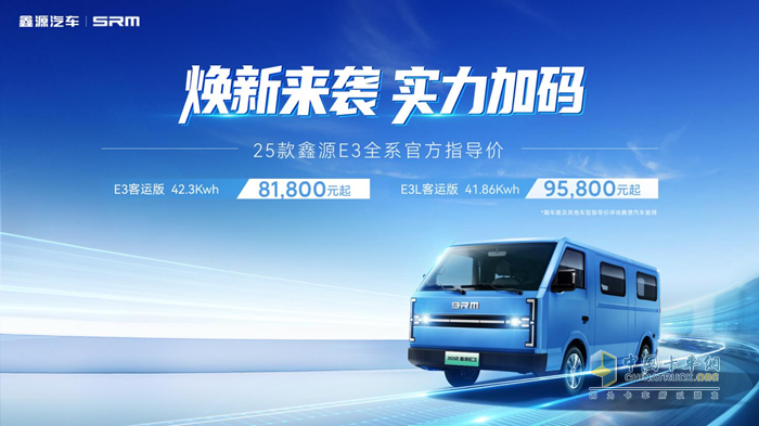 2025年3月1日,”瑞氣盈龍首好車啟錦途——25款鑫源E3寵粉發(fā)布會"成功舉行,發(fā)布會以線上直播形式開展。全新上市的25款鑫源E3,擁有客運版與廂貨版,提供2/6/9座多種座椅組合選擇,進一步完善VAN產(chǎn)品矩陣,并豐富了城配運輸市場的需求,新車售價8.18萬元起。