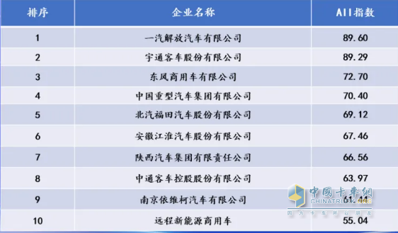 中國汽車(商用車)企業(yè)創(chuàng)新排行榜TOP10