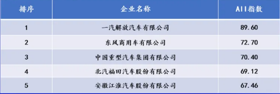 中國汽車(商用車)企業(yè)創(chuàng)新排行榜卡車TOP5