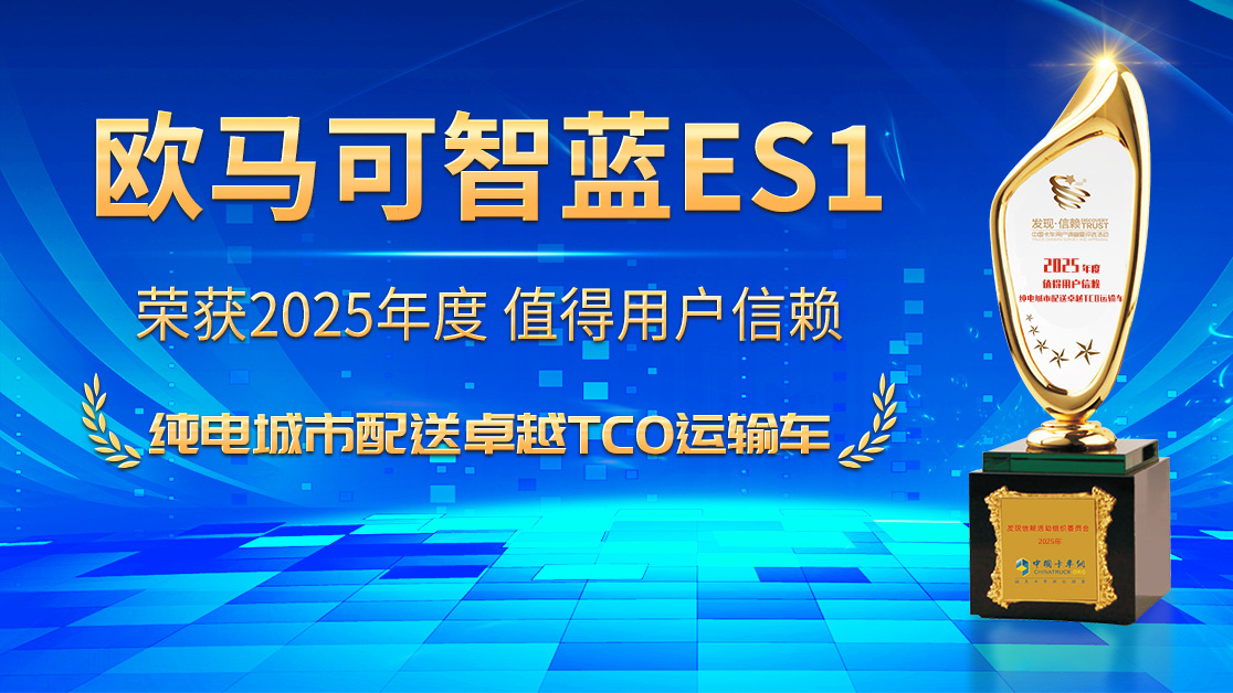 恭喜歐馬可智藍(lán)ES1榮獲2025年度值得用戶信賴純電城市配送卓越TCO運(yùn)輸車