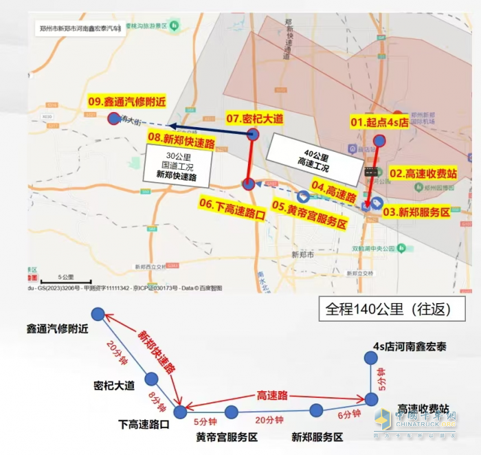 本次參與場(chǎng)景實(shí)測(cè)的三款車型:東風(fēng)天龍KX王者燃油牽引車(搭載DDi580發(fā)動(dòng)機(jī))、東風(fēng)天龍KL燃油牽引車(搭載DDi490發(fā)動(dòng)機(jī))、東風(fēng)天龍KL燃?xì)鉅恳嚕ù钶dDGi520發(fā)動(dòng)機(jī)),均匹配DA12智能變速箱,并在49噸標(biāo)載工況下開啟挑戰(zhàn)。實(shí)測(cè)路線聚焦“平原+微丘陵”復(fù)合工況,覆蓋紅綠燈密集區(qū)域、長(zhǎng)緩坡丘陵路段及高速干線,全場(chǎng)景驗(yàn)證DA12變速箱在頻繁啟停、坡度起伏狀態(tài)下的換擋平順性與動(dòng)力響應(yīng)表現(xiàn)。