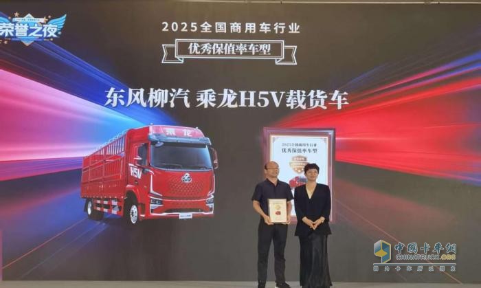在大會頒獎典禮上,東風(fēng)柳汽旗下明星產(chǎn)品——乘龍H5V載貨車,憑借其在市場中的卓越表現(xiàn)、可靠品質(zhì)和突出的用戶口碑,榮獲大會權(quán)威頒發(fā)的“2025全國商用車行業(yè)優(yōu)秀保值率車型”獎項。