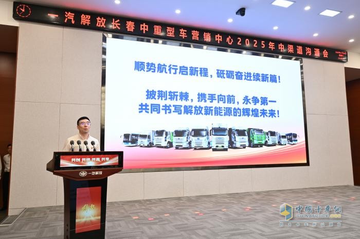 2025年7月26日,以“共創(chuàng) 共進(jìn) 共贏 共享”為主題的一汽解放2025年中渠道溝通會(huì)長(zhǎng)春中重型車分會(huì)在長(zhǎng)春隆重召開。一汽解放領(lǐng)導(dǎo)班子成員李勝、于長(zhǎng)信、王浩、田立新、王志宇、王建宇,一汽解放總經(jīng)理助理董亞洲、楊麗,營(yíng)銷總部、產(chǎn)品線、動(dòng)力總成事業(yè)部相關(guān)高級(jí)經(jīng)理以及生態(tài)伙伴、核心投資人及經(jīng)銷商代表等300余人齊聚一堂,共商發(fā)展大計(jì),共繪一汽解放發(fā)展藍(lán)圖。