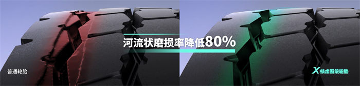 X碳極技術(shù)以三大“首創(chuàng)”奠定技術(shù)壁壘:首創(chuàng)高溫射流裝備、X碳極化學(xué)構(gòu)建工藝,以及拓?fù)渚W(wǎng)絡(luò)結(jié)構(gòu)的X碳極增強(qiáng)復(fù)合材料。“這種材料具有高剛度、高耐磨、高導(dǎo)熱特性,能從根源改善輪胎性能。” 實(shí)際效果顯著:耐磨性能提升50%、河流狀磨損降低80%、操控性能提升15%、子口故障率下降50%、肩部磨損降低 60%。