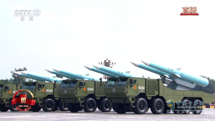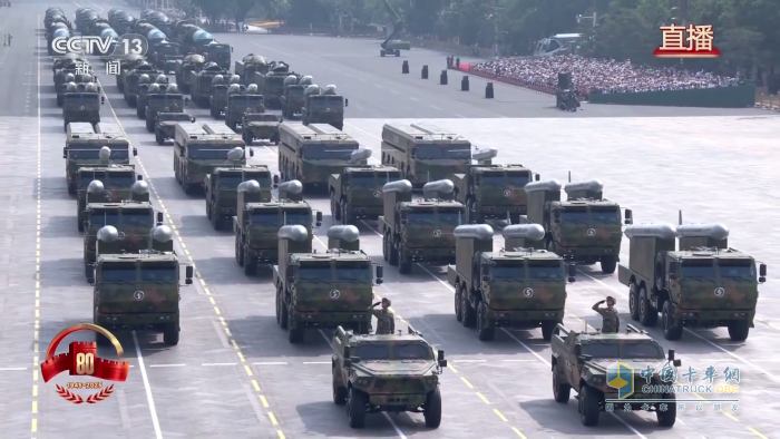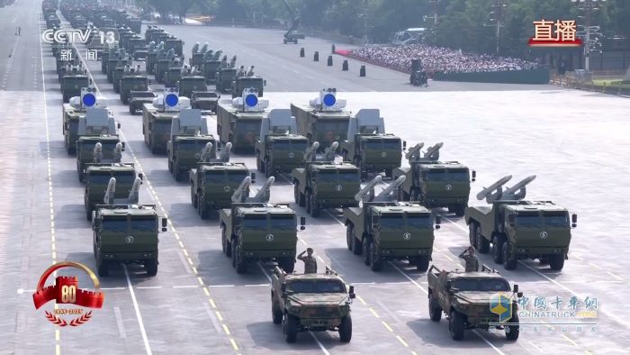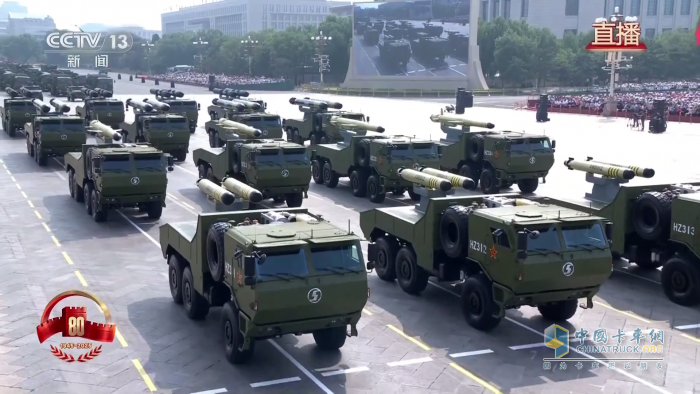 陜汽以 SX2300 、SX2190N為代表的多種型號軍車,搭載白楊-M(東風-31A)戰(zhàn)略核導彈方隊等,這是中國首次在非國慶節(jié)舉行的大規(guī)模閱兵,具有重要的國際和歷史意義,展現(xiàn)了捍衛(wèi)世界和平的決心與實力。