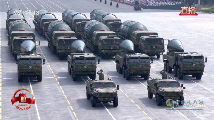 陜汽最新一代 SX2306 型等多種型號軍用越野車,堪稱“主力中的主力”,尤其是牽引著國之重器“東風-41”洲際戰(zhàn)略核導彈壓軸出場,展現(xiàn)了我國陸基戰(zhàn)略核打擊力量的強大體系,是其閱兵史上的高光時刻。