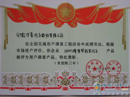 近日,在成都由中國質(zhì)量協(xié)會舉辦的“2007年全國用戶工作會議暨實施用戶滿意工程推進大會”上,華菱公司自主研發(fā)生產(chǎn)的 CAMC牌重型載貨汽車產(chǎn)品榮獲“全國用戶滿意產(chǎn)品”稱號,這是華菱重卡誕生三年來首次獲得此項榮譽,也是獲得此項榮譽的國內(nèi)最年青的重卡企業(yè)。