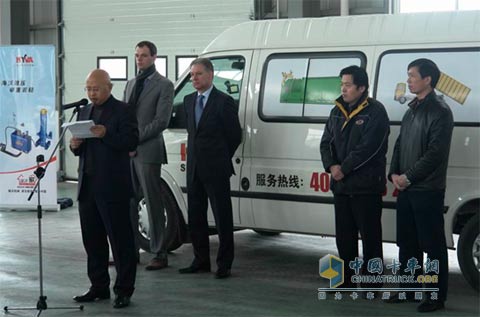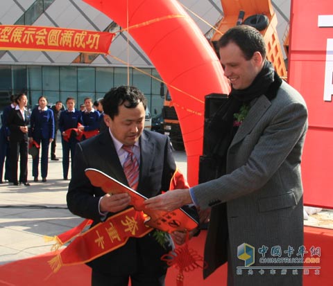 海沃(揚(yáng)州)有限公司產(chǎn)品總監(jiān)Peter先生向北奔自卸車用戶交接金鑰匙