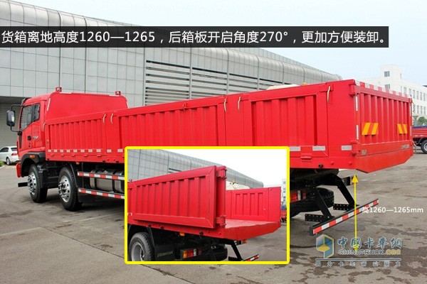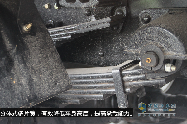 與同類(lèi)車(chē)型相比,它的一大優(yōu)勢(shì)在于貨箱離地高度僅為1260mm,裝車(chē)更加方便,節(jié)省力氣。同時(shí),貨箱承載采用的是分體式多片簧的設(shè)計(jì),在重載時(shí)還可以降低車(chē)身高度,提高裝載量,將對(duì)提高運(yùn)輸效率起到很大的幫助。
