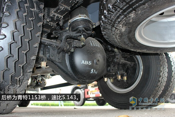 由于這款車(chē)的定位為工程運(yùn)輸,運(yùn)輸情況一般為中速重載,所以它的后橋采用的是青特1153車(chē)橋,10噸級(jí),速比為5.143,匹配更加合理,最高時(shí)速超過(guò)100km/h,相對(duì)于應(yīng)用最廣泛的短途工程運(yùn)輸來(lái)說(shuō),中長(zhǎng)途同樣適用。